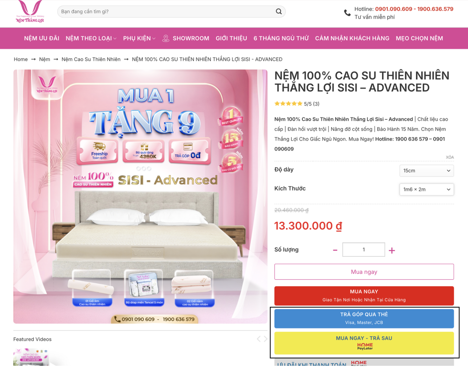 2. Hướng dẫn mua trả góp trên website Nệm Thắng Lợi