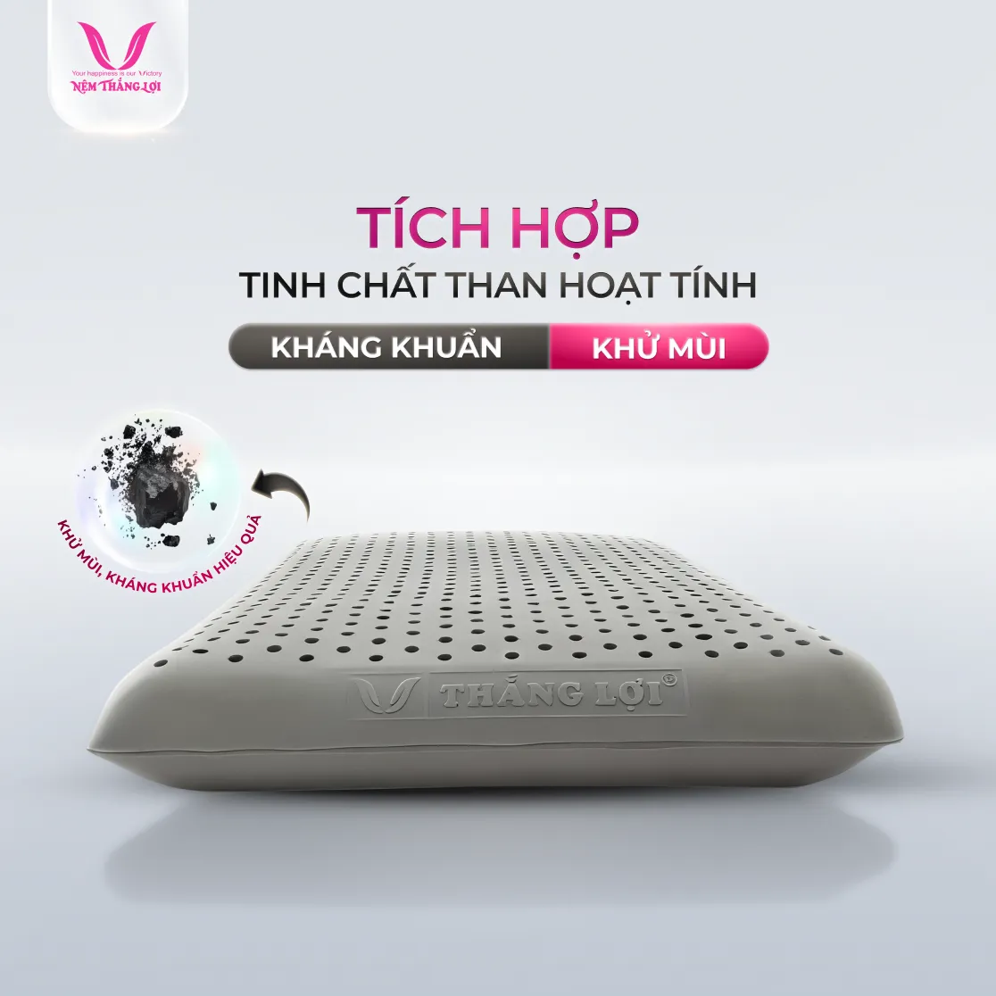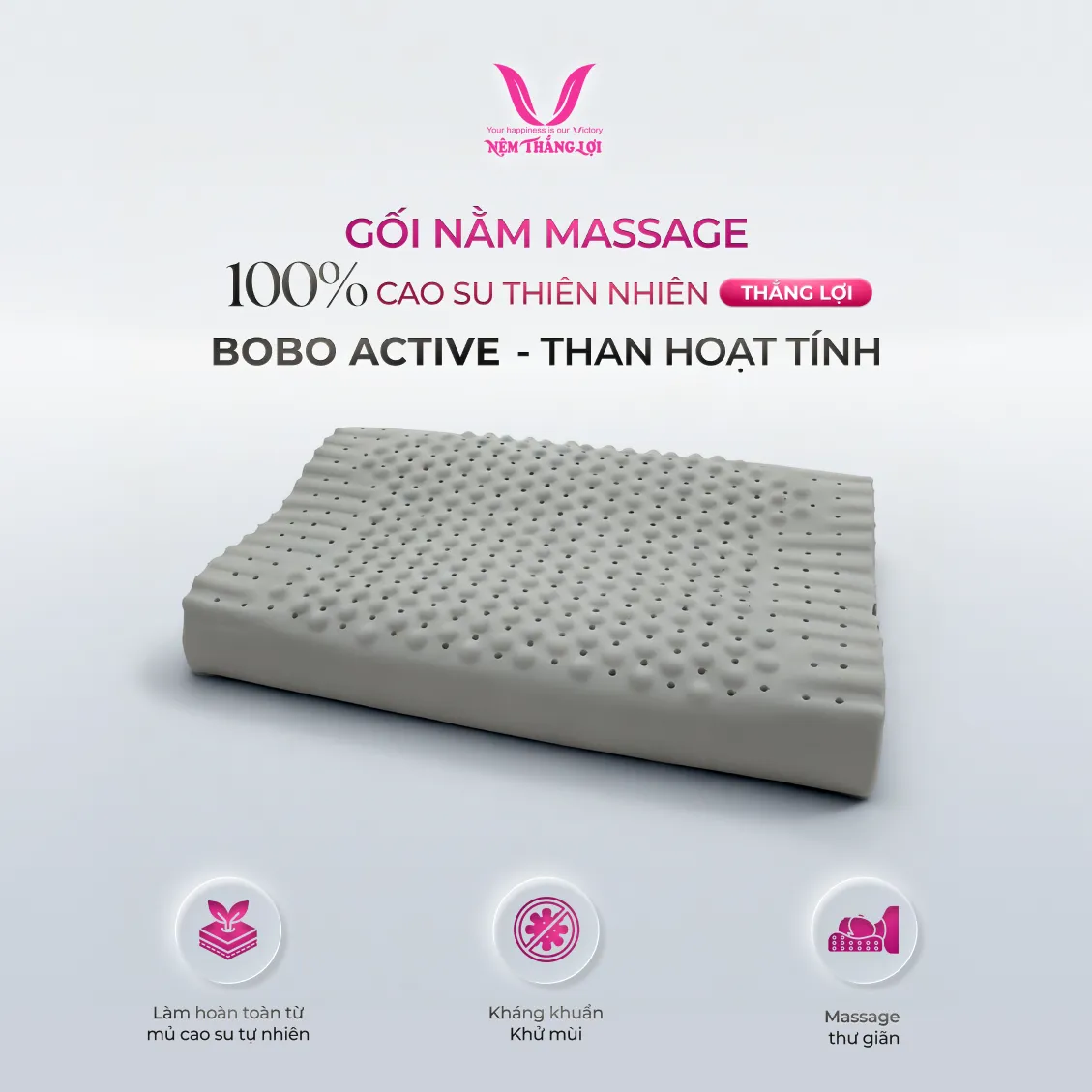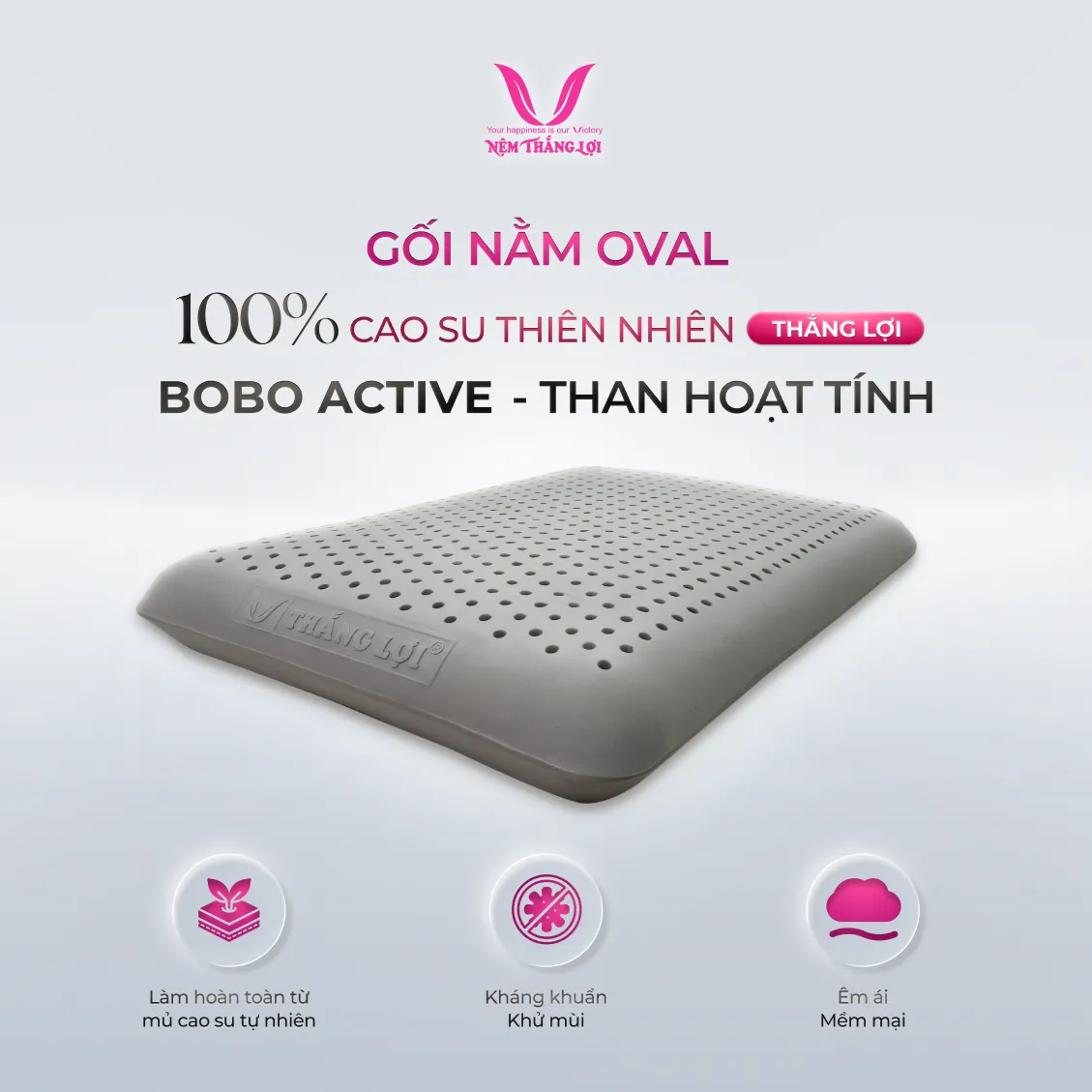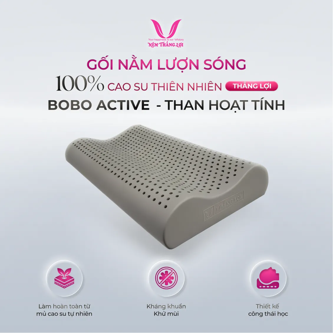 Gối Nằm 100% Cao Su Thiên Nhiên Thắng Lợi BoBo – Than Hoạt Tính là sản phẩm cao cấp từ Công Ty TNHH Nệm Thắng Lợi, một thương hiệu uy tín và đã được đăng ký thương hiệu độc quyền.