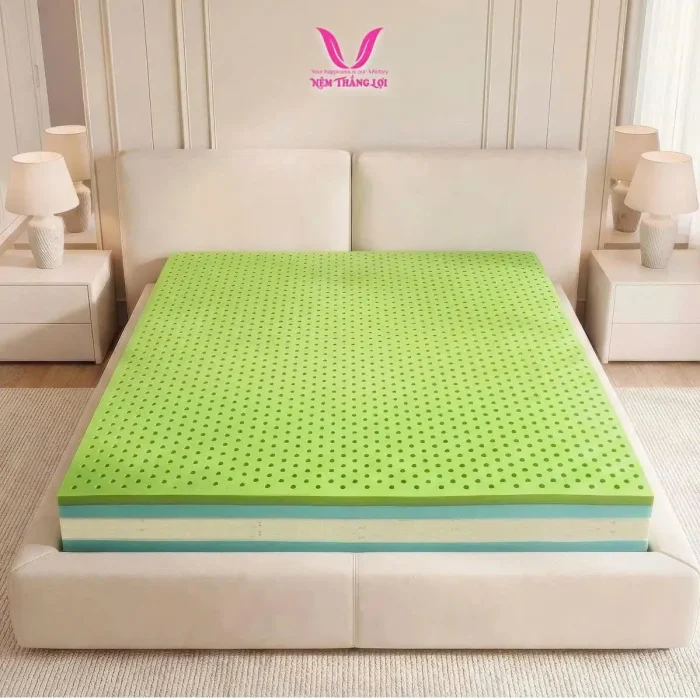 - Thoáng khí tự nhiên: Hệ thống lỗ thoáng trên cao su giúp đối lưu không khí tốt hơn.