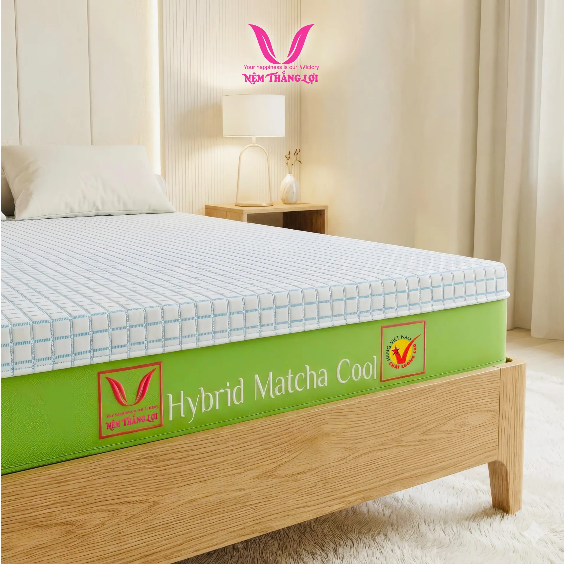 Nệm Cao Su Thiên Nhiên Điều Hòa Hybrib Matcha Cool là dòng nệm thế hệ mới của Thắng Lợi, được thiết kế dành riêng cho khí hậu nóng ẩm Việt Nam.