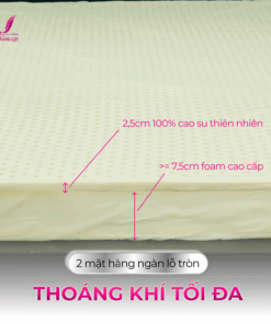 • Foam Cao Cấp: Lớp foam dày 7.5cm ở mặt dưới cung cấp độ cứng vừa phải để hỗ trợ và giữ cho nệm không bị lún quá mức. Foam cao cấp giúp nệm có độ đàn hồi tốt và không bị biến dạng sau thời gian dài sử dụng.