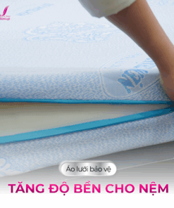 • Lớp Áo Lưới Bảo Vệ: Nệm còn được bảo vệ bởi một lớp áo lưới, giúp giữ ruột nệm chắc chắn hơn và tăng độ bền cho sản phẩm. Lớp áo lưới này còn giúp nệm thông thoáng, ngăn ngừa ẩm mốc và kéo dài tuổi thọ của nệm.