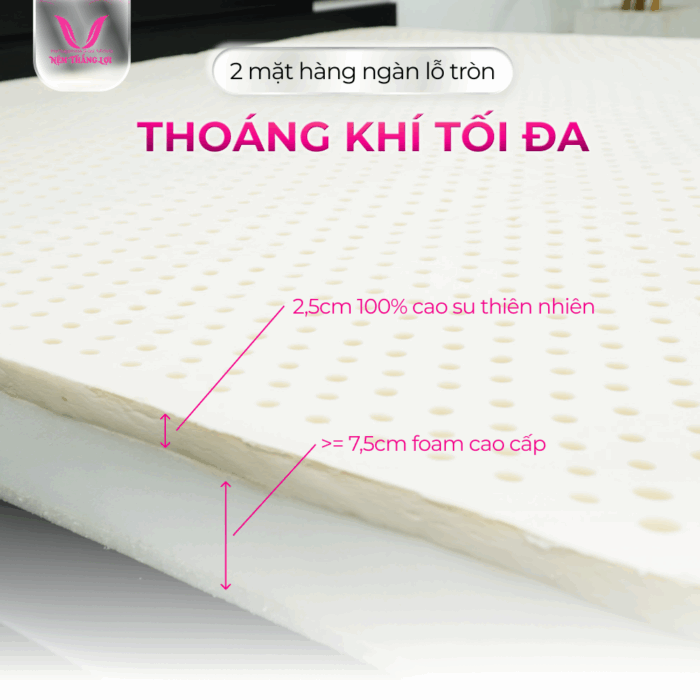- Kháng khuẩn tự nhiên: Lớp cao su thiên nhiên có khả năng chống vi khuẩn và nấm mốc, đảm bảo sức khỏe người sử dụng.