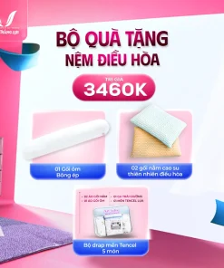 ✔️Bộ quà tặng 8 món bao gồm: 2 gối nằm cao su thiên nhiên điều hòa, 1 gối ôm cao bông ép, 1 bộ drap – mền Tencel cao cấp  5 món.