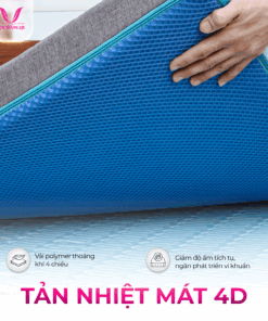 Khi bạn nằm lên nệm, lớp tản nhiệt 4D tạo ra một không gian rỗng giúp không khí lưu thông dễ dàng, giúp giảm nhiệt độ thân nệm một cách hiệu quả. Ngoài ra, khả năng thông thoáng cao của lớp tản nhiệt còn giúp giảm độ ẩm tích tụ, làm giảm nguy cơ phát triển nấm mốc và vi khuẩn, đảm bảo nệm luôn khô ráo và sạch sẽ.