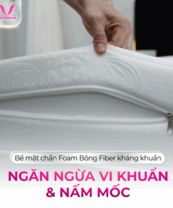 Nệm được thiết kế với các lỗ thoáng khí, giúp loại bỏ bụi bẩn và hơi ẩm tích tụ trên bề mặt nệm. Điều này giữ cho nệm luôn khô ráo và thoáng mát, ngăn ngừa sự phát triển của nấm mốc và vi khuẩn. Chất liệu foam cũng có tính kháng khuẩn tự nhiên, giúp bảo vệ sức khỏe của bạn và gia đình.