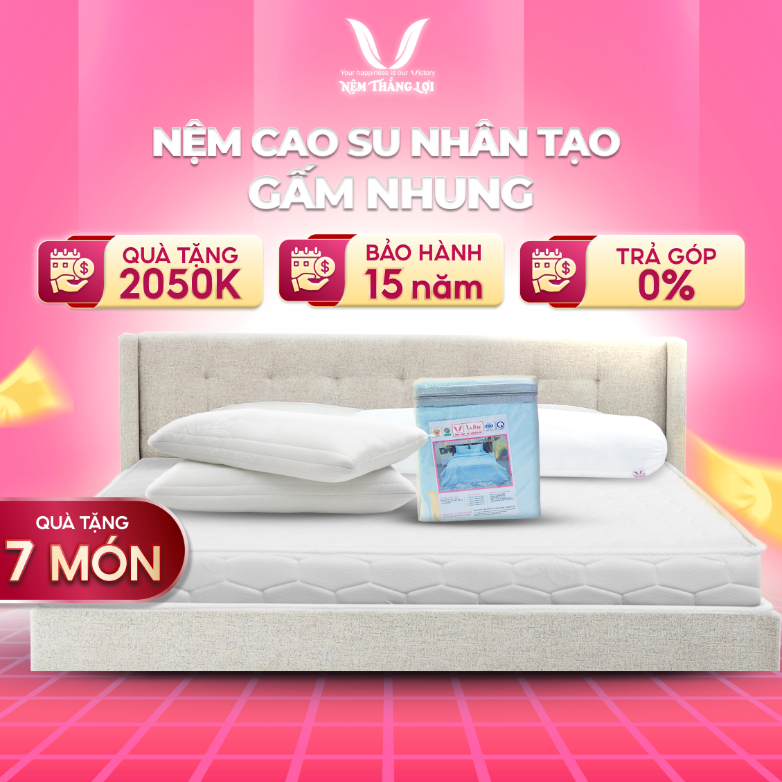 Nệm Cao Su Nhân Tạo Gấm Nhung Thắng Lợi không chỉ mang lại sự thoải mái, dễ chịu mà còn giúp nâng cao chất lượng giấc ngủ của bạn. Với chất liệu cao su foam cao cấp và vải gấm mềm mại, sản phẩm này chắc chắn là lựa chọn tuyệt vời cho mọi gia đình. Hãy liên hệ với chúng tôi để sở hữu ngay chiếc nệm cao cấp này và tận hưởng những giấc ngủ trọn vẹn.